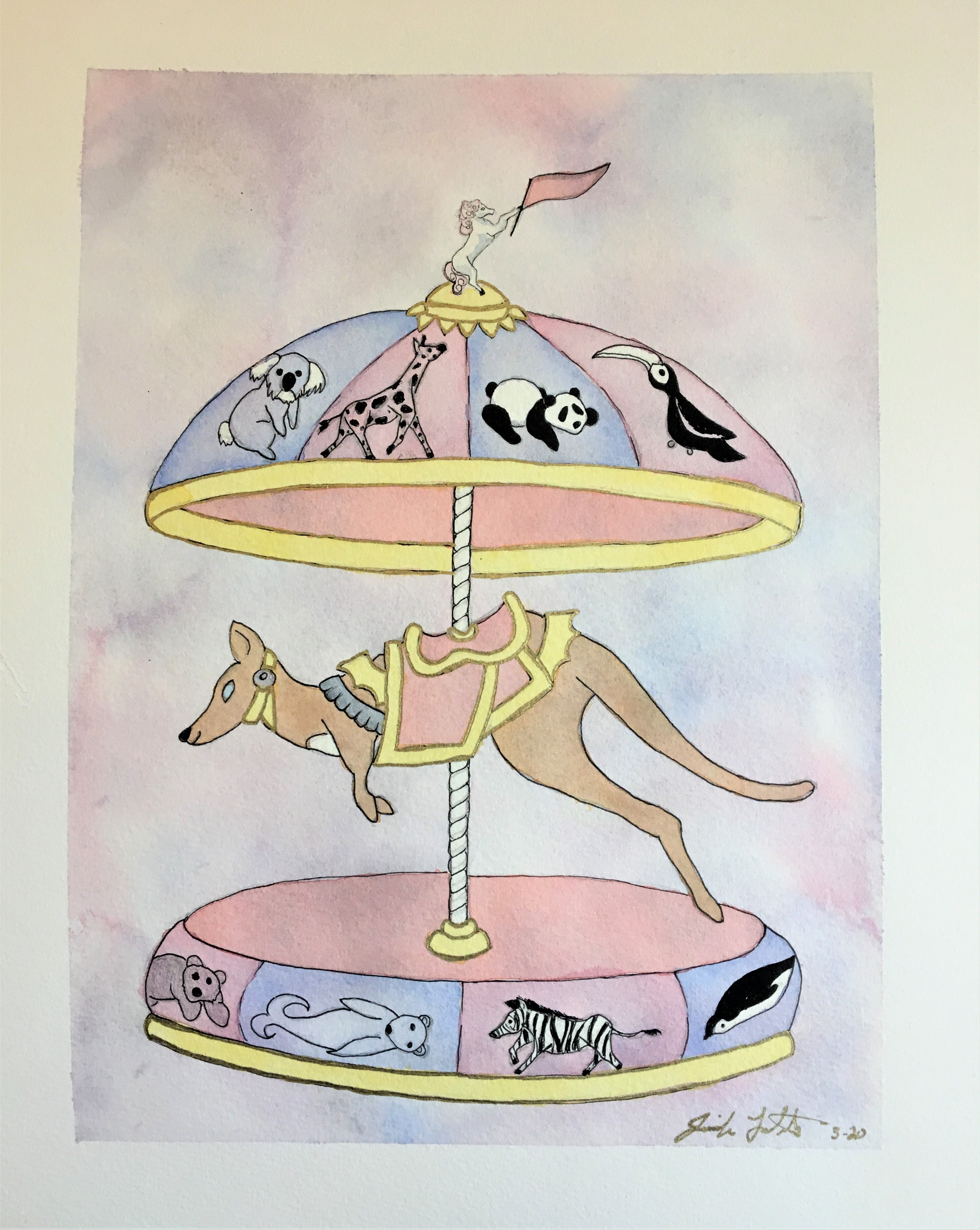 I also had a commission to create some adorable classroom art for a friend. The commission was to incorporate the animals that each class used as a mascot, as well as the school’s mascot. Two versions were created as part of this work and it was sold as a pair. It was interesting trying to keep the images consistent while making the minor alterations. I loved working in pastels!