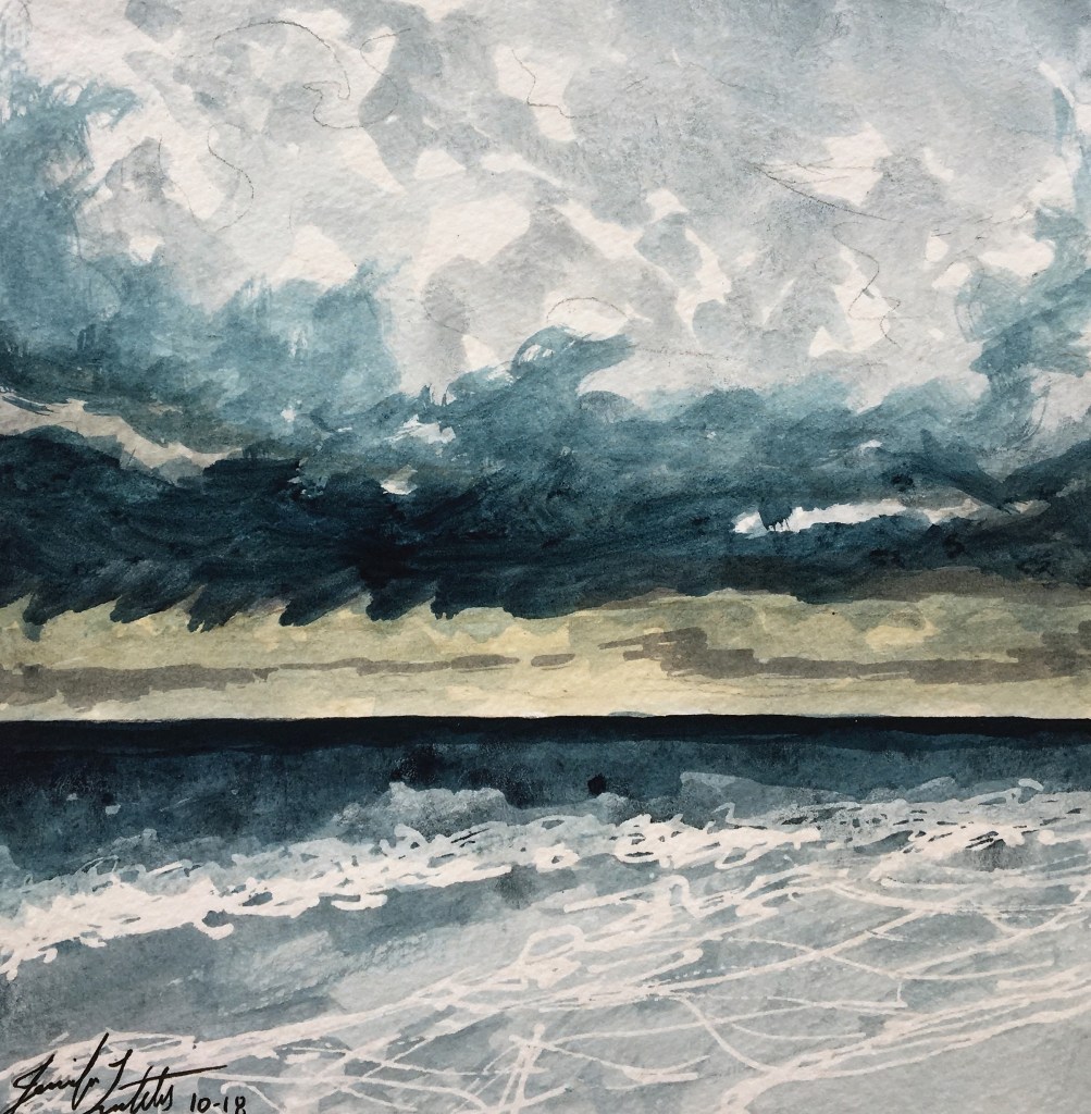 “Dark Seas” 8×8 on 140 lb cold pressed paper.