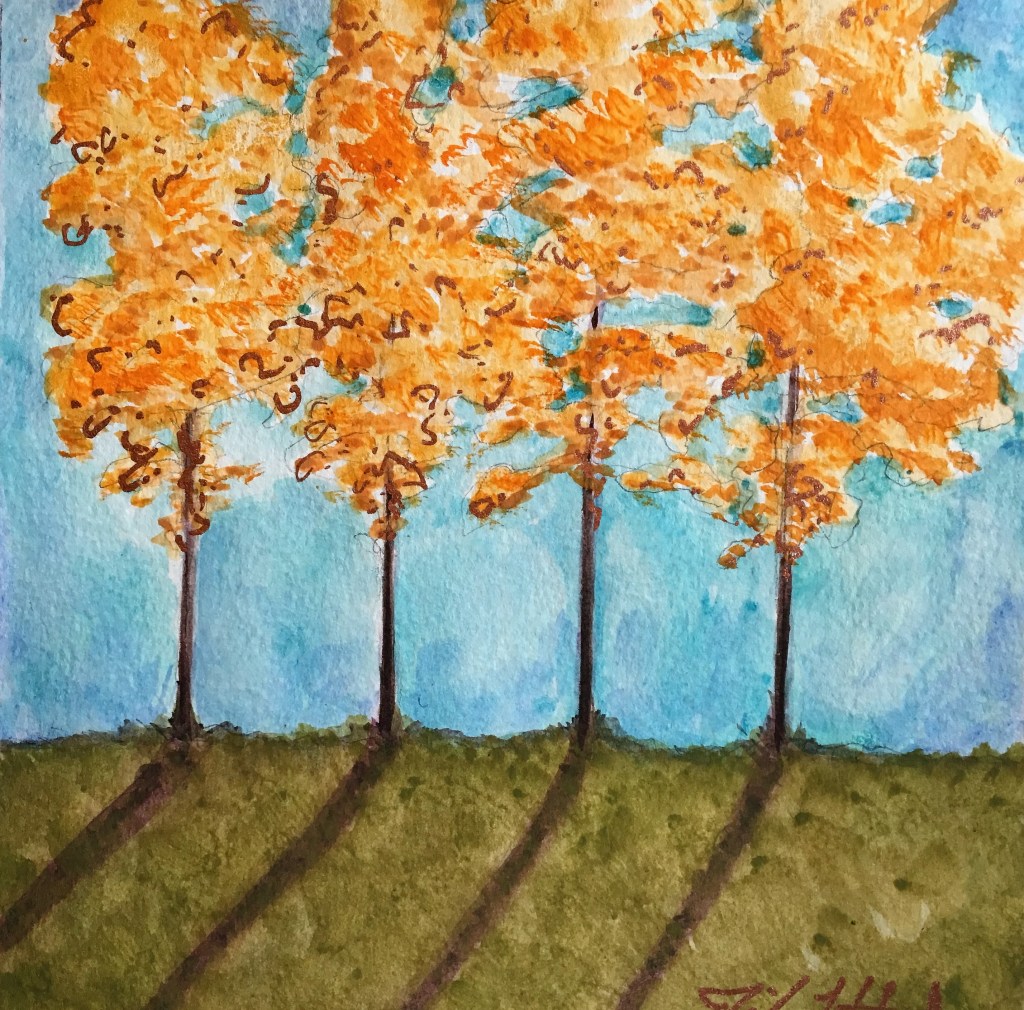 “Orange Maples” 8×8 on 140 lb cold pressed paper.