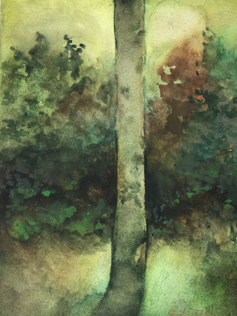 “Birch View” 7X10 watercolor on Arches 100% cotton Rough paper.